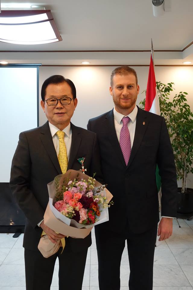 A magyar-koreai kapcsolatok 30. évfordulójának alkalmából Park Chul-un úr, a Koreai Köztársaság egykori minisztere és Ro Te Vu államfő különmegbízottja a Magyar Érdemrend Középkeresztje kitüntetésében részesült. Park Chul-un úr 1988-ban Ro elnök megbízottjaként két alkalommal látogatott el Magyarországra, ahol a kapcsolatfelvételt célzó titkos tárgyalásokat folytatott az akkori magyar vezetéssel. A kitüntetést 2019. február 12-én Dr. ...